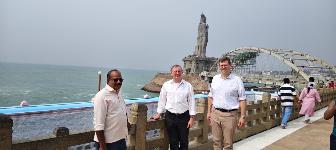 In de ochtend bezochten we Kanyakumari, twee rotseilanden voor de kust die met een glazen brug met elkaar verbonden zijn. Het ene eiland heeft een heiligdom waar een hindoe heeft gemediteerd (Vivekananda Rock) en op het andere staat een 40 m hoog beeld van een iemand uit de tijd van Jezus (Thiruvalluvar Statue). De eilanden zijn te bereiken met een veerdienst van 10 minuten. De plaats wordt door veel Indiase mensen als een toeristische trekpleister bezocht.